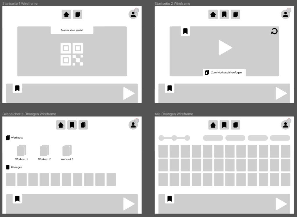 Nachdem das Konzept validiert wurde, gestalteten wir erste Wireframes der digitalen Anwendung. Der Fokus lag dabei auf der Gestaltung einer möglichst einfachen Benutzeroberfläche, welche die SchülerInnen bei der Produktnutzung anleitet.